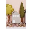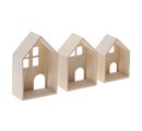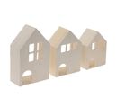 Sada 3 dřevěných 3D domečků je vyrobena ze dřeva. Domečky měří cca v 10,5 x š 7,5 cm, cca v 12,5 x š 8,5 cm a cca v 14,5 x š 9,5 cm. Hloubka všech tří tvarů je cca 4,5 cm. Dřevěné domečky lze použít k mnoha dekoracím. Můžete je například ozdobit barvami na tvoření , šablonami, slámovým hedvábím, efektní barvou nebo barvou Chalky.