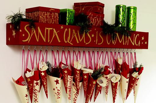 Čísla vypadají nejlépe vypsaná jako slovo s čísly. Do sáčků udělejte otvory a připevněte stuhu jako poutko. Nyní sáčky naplňte hedvábným papírem - uvnitř se mohou nádherně skrývat malá překvapení. Existují různé možnosti zavěšení adventního kalendáře.