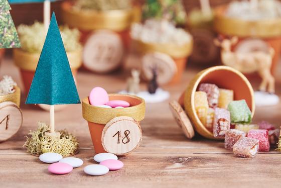 Takový domácí adventní kalendář udělá radost každému! Pod každým stromkem z různých druhů papíru je hliněný květináč ve tvaru kmene stromu, který obsahuje malá překvapení. Díky očíslovaným diskům s větvičkami přesně víte, který stromek můžete který den otevřít. Kalendář lze naplnit podle přání a vkusu obdarovaného. Roztomilý hliněný lesní květináč lze používat každý rok znovu a ve vaší domácnosti se stane skvělou ozdobou.