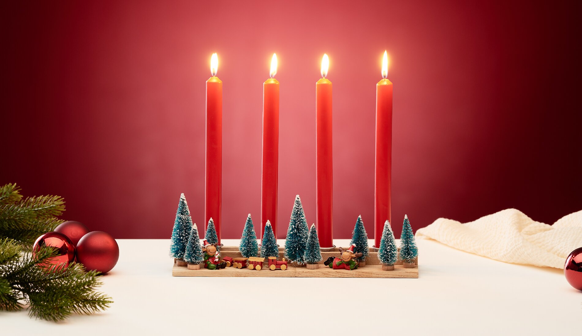 Do svícnů vložte lepicí voskové kotouče a vložte do nich tyčinkové svíčky.