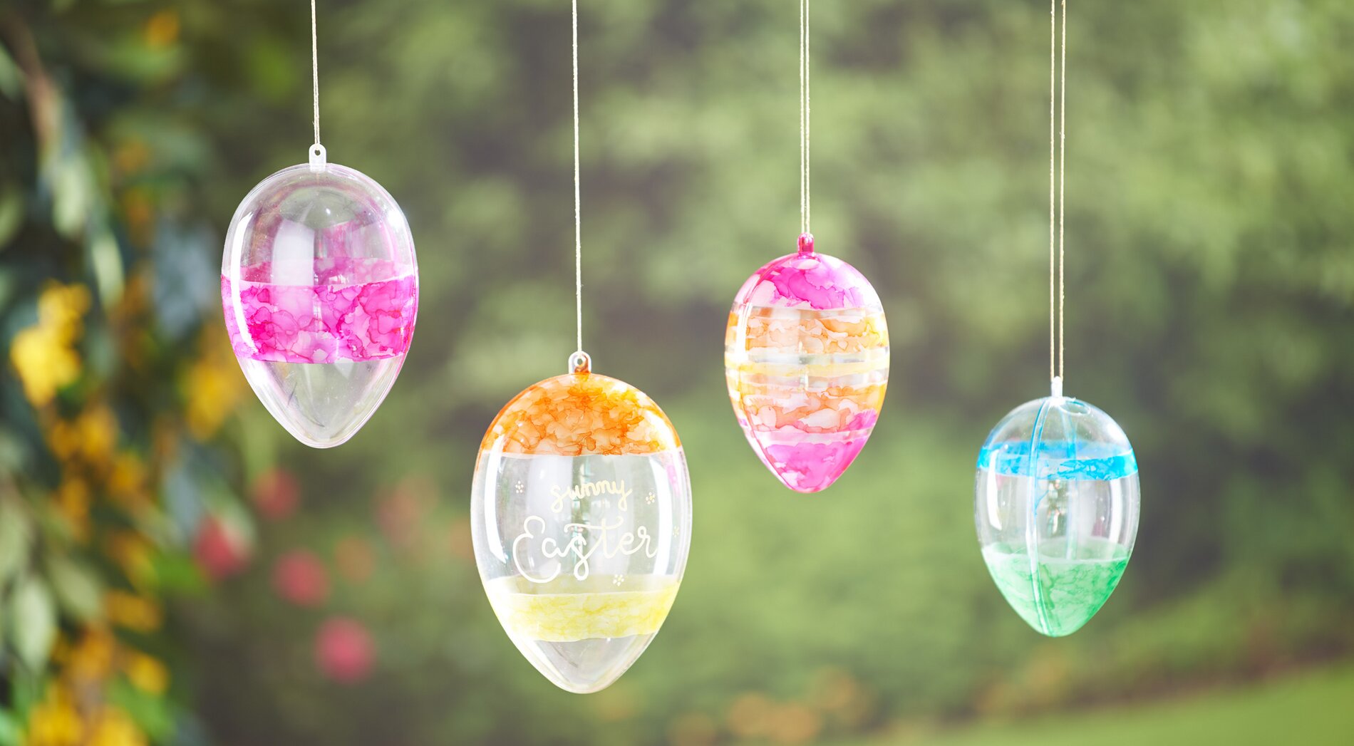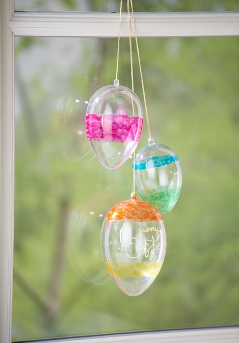Začněte tím, že na akrylová vajíčka nalepíte různě široké kousky washi pásky. Tato páska dokonale přilne a zajistí, že při malování vajíček vznikne čistý barevný okraj.