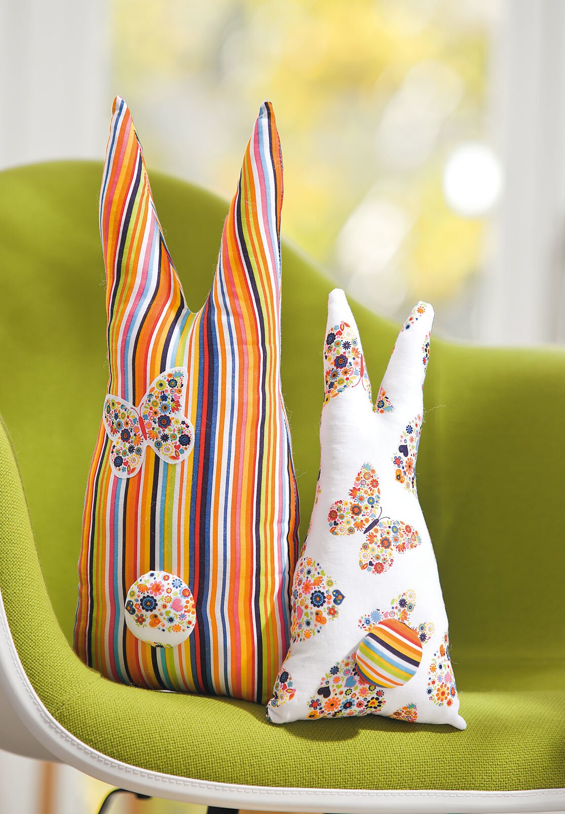 Zvětšete šablonu na požadovanou velikost a vystřihněte ji. Zajíčci na našem obrázku jsou 39 cm a 27 cm vysocí, šablona odpovídá malému zajíčkovi.