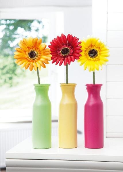 Tyto barevné skleněné lahve jsou zdobeny ve veselém pop-artovém stylu. Usnadněte si práci pomocí praktických editačních sprejů. Vyberte si z široké škály barev a navrhněte si vázy v nádherných barevných kombinacích.