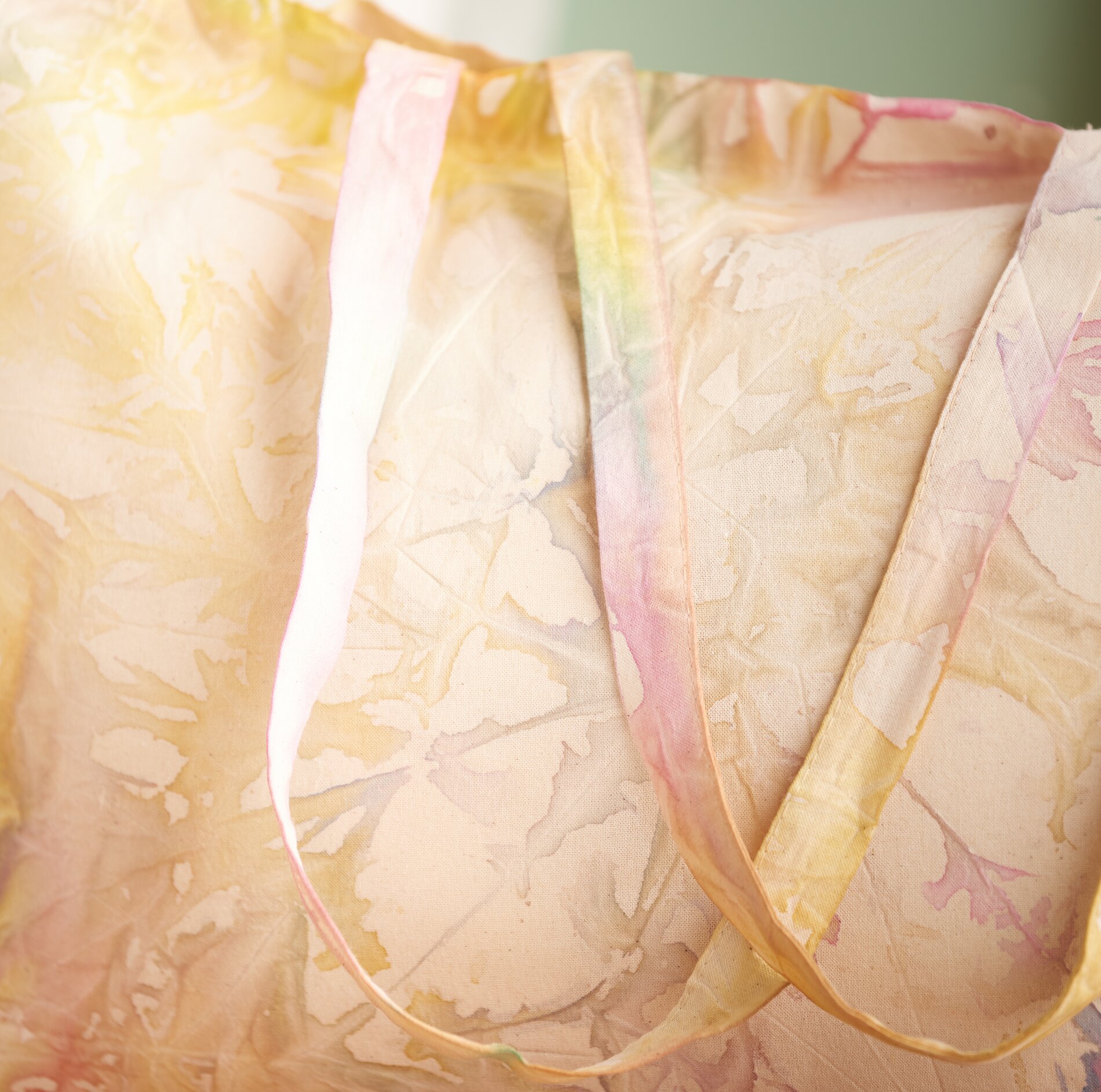 Jakmile je barva dobře zapracovaná, opatrně odstraňte šňůrku nebo gumičky. Opatrně rozložte nákupní košík, aniž byste látku příliš tahali. Zachováte tak barevné přechody a vzory.
