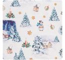 Bavlněná látka "BíléVánoce" váží přibližně 140 g/m² a je široká přibližně 150 cm. Je vyrobena ze 100% bavlny. Na zasněženém bílém podkladu jsou vyobrazeny zimní a vánoční motivy.