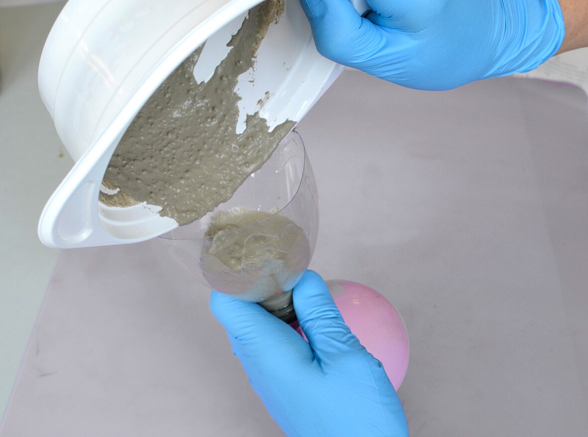 Nyní rozdělte beton uvnitř balónku jeho otáčením. Vše nechte schnout alespoň 24 hodin.