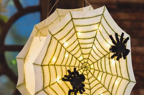 Freie Formen gelingen euch ebenfalls mit Lampenfolie, die einfach zugeschnitten werden kann. Die Anleitung für die gruselige Spinnennetz- Laterne gibt es zum kostenlosen Download.