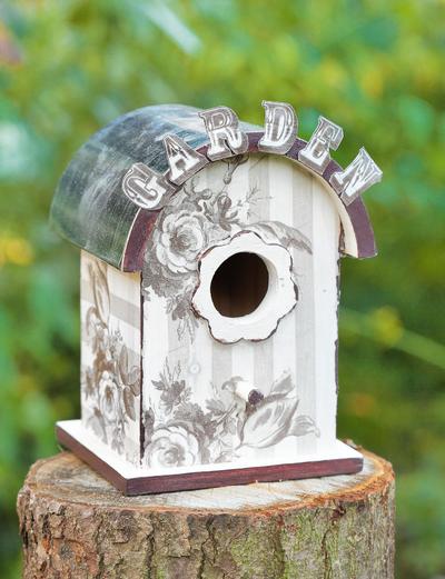 Mit Servietten und Serviettentechnik lassen sich im Nu neue Looks zaubern. Sogar ein Heim für Vögel lässt sich mit hohem Wohlfühlfaktor gestalten. Passende Servietten in neutralen Farben: