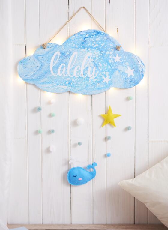 Před zahájením tvůrčí práce byste měli pracovní plochu zakrýt fólií nebo novinami, abyste zabránili znečištění. Nyní vezměte obláček a odstraňte bavlněnou šňůru. Do různých kelímků nalijte požadované akrylové barvy a přidejte trochu licího média. Celé to promíchejte. Zkontrolujte, zda je barva tekutá, v opačném případě jednoduše přidejte ještě trochu nalévacího média. Tip: Pokud chcete dosáhnout tvorby buněk, přidejte do směsi barev 1 až 2 kapky silikonového oleje. Nyní vrstvěte barvy v kádince tak, že do jedné kádinky nalijete různé barevné směsi. Poté položte kelímek dnem vzhůru na obláček, chvíli počkejte a pak kelímek zvedněte. Barva bude nyní stékat po mraku. Pokud chcete, můžete vzít obláček do ruky a vířením rozetřít barvu po celé ploše. Celé to nechte zaschnout alespoň 24 hodin.