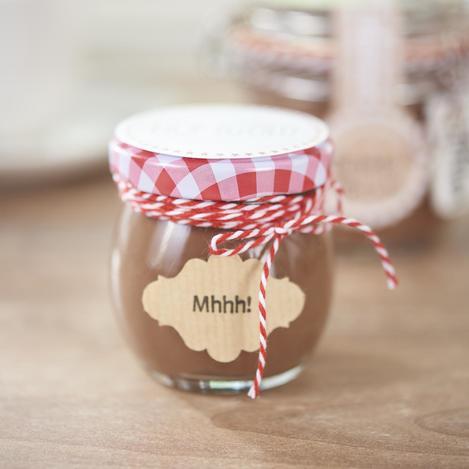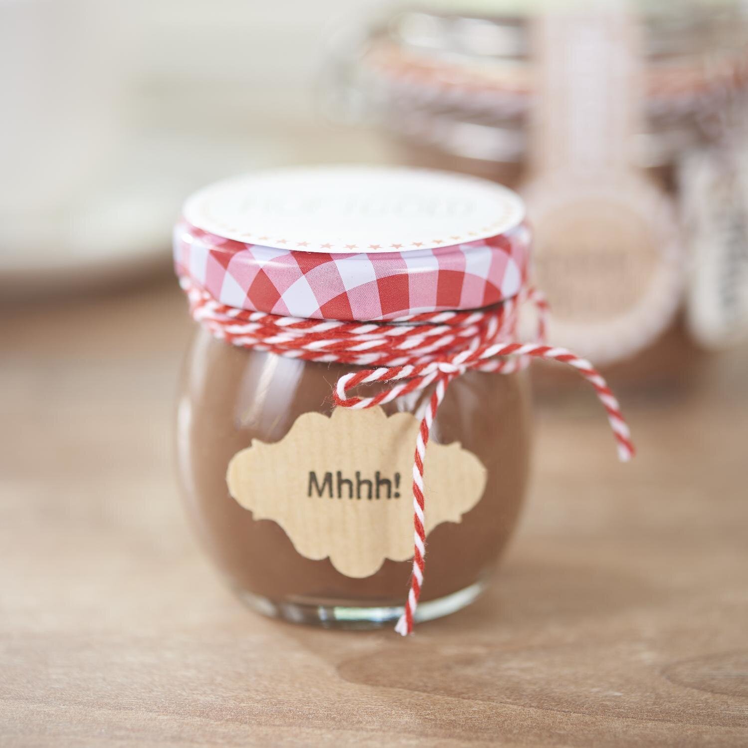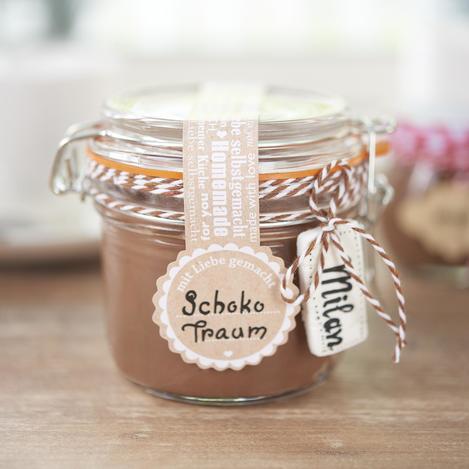Ozdobte a dejte jako dárek!Čokoládový sen nalijte do sklenice s velkým otvorem a poté ozdobte podle svého přání. V naší nabídce najdete velký výběr zdobicích materiálů a jako obvykle jsme pro vás v našem seznamu materiálů shromáždili nejdůležitější doplňky.