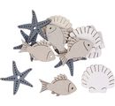 Okouzlující dekorační prvky z moře "Milow", 12 kusů o velikosti cca 2,5, 3 a 3,5 cm, tloušťka cca 0,2 cm. Obdržíte motivy mušle, hvězdice a ryby. Každý motiv obsahuje 4 dekorační prvky v bílé, modré a šedé barvě. Materiál je překližka.