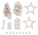 Skvělá rozptylová sada "domečků" pro VBS pro kreativní design. Skládá se z různých dřevěných rozptylových dílků, ze kterých lze pomocí stuhy a korálků vytvořit přívěsky. Některé z rozptylových dílků mají otvor pro zavěšení o Ø cca 2 - 3 mm.