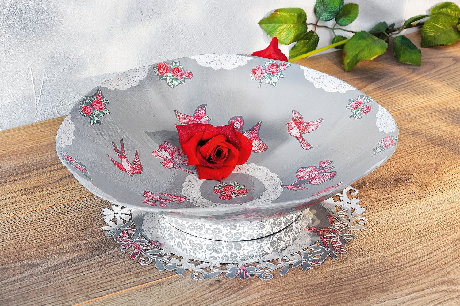 Tato dekorativní mísa v krásném vintage stylu je ideální jako skvělá dekorace na stůl. Lze ji ozdobit různými způsoby a skvěle doplnit vlastními nápady.