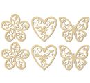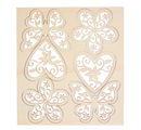 6 přívěsků"Květiny, srdce a motýli" s ornamenty pro přizpůsobení. Tyto krásné přívěsky mají průměr cca 7-8,2 cm a tloušťku 3 mm. Jarní motivy jsou vyrobeny z kvalitní překližky. K dispozici jsou 3 různé motivy, každý po 2 kusech.