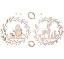 Obdržíte dva láskyplně navržené přívěsky z dýhované překližky, které vybízejí k výrobě a zdobení pomocí částečně předkreslených čar na skřítkovi a bambulovitého nosu soba. Bambulový nos se přilepí pomocí trochy řemeslného lepidla (není součástí balení).