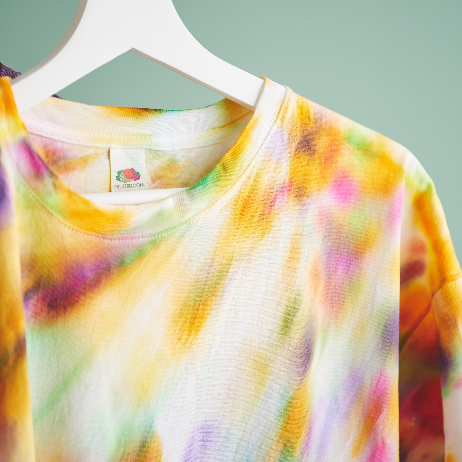 Po barvení tričko opatrně rozložte. Za látku silně netahejte, abyste zachovali barevné přechody. Poté tričko zavěste a nechte jej zcela uschnout. Barvu lze zafixovat až po úplném uschnutí látky.
