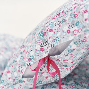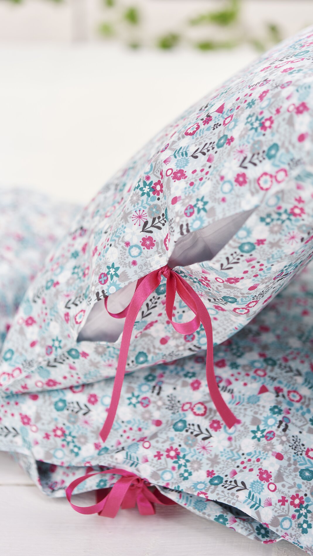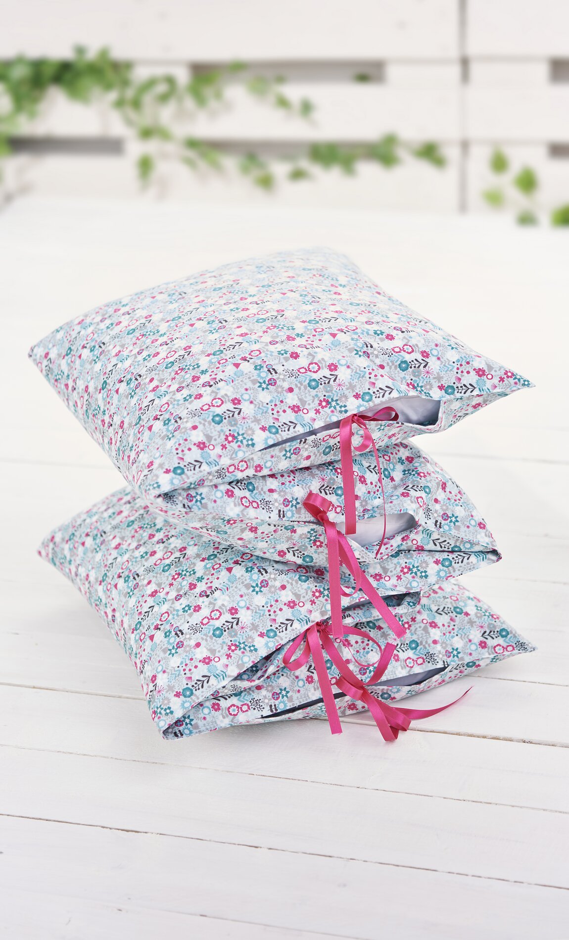 K uzavření těchto otvorů se používá saténová stuha. Vystřihněte 8 stejných kousků saténu a jednoduše je ručně všijte do středu každého otvoru polštáře. Uvažte mašli.