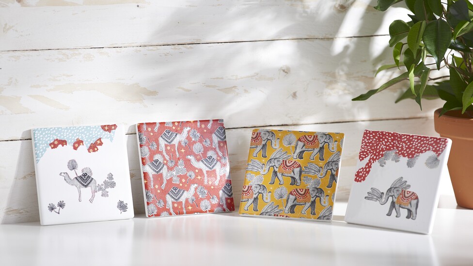 7. V našem příkladu byly dvě dlaždice zcela vně navrženy pomocí několika papírů a dvě dlaždice uprostřed pomocí jednoho. Vaší kreativitě se při výběru motivu meze nekladou. A s Décopatchem jste již vytvořili krásně zdobené dlaždice.