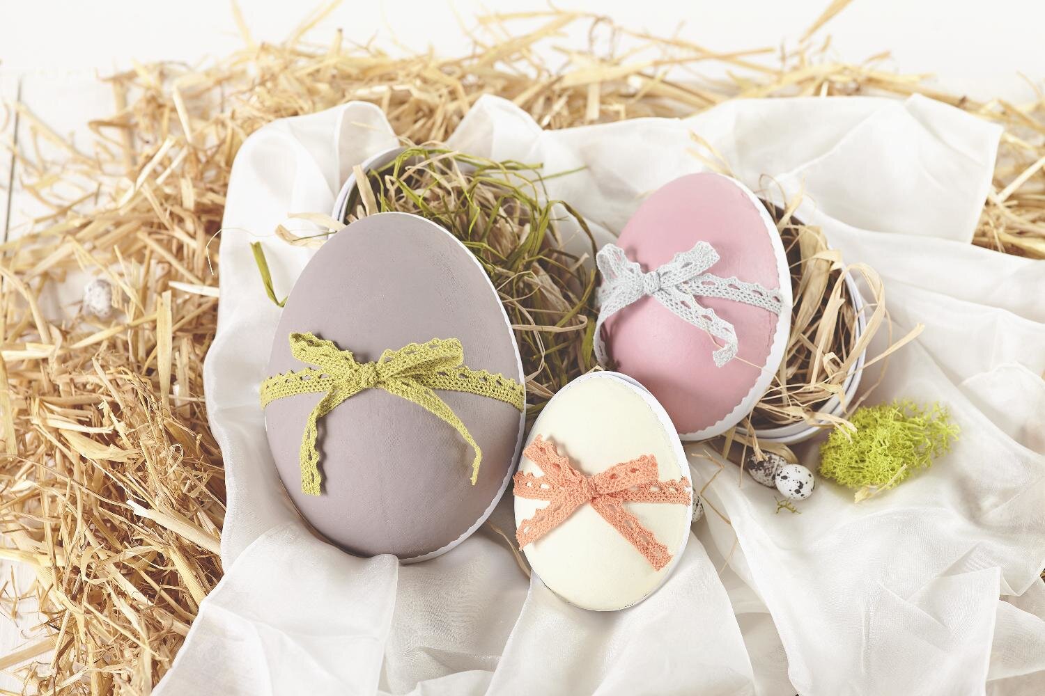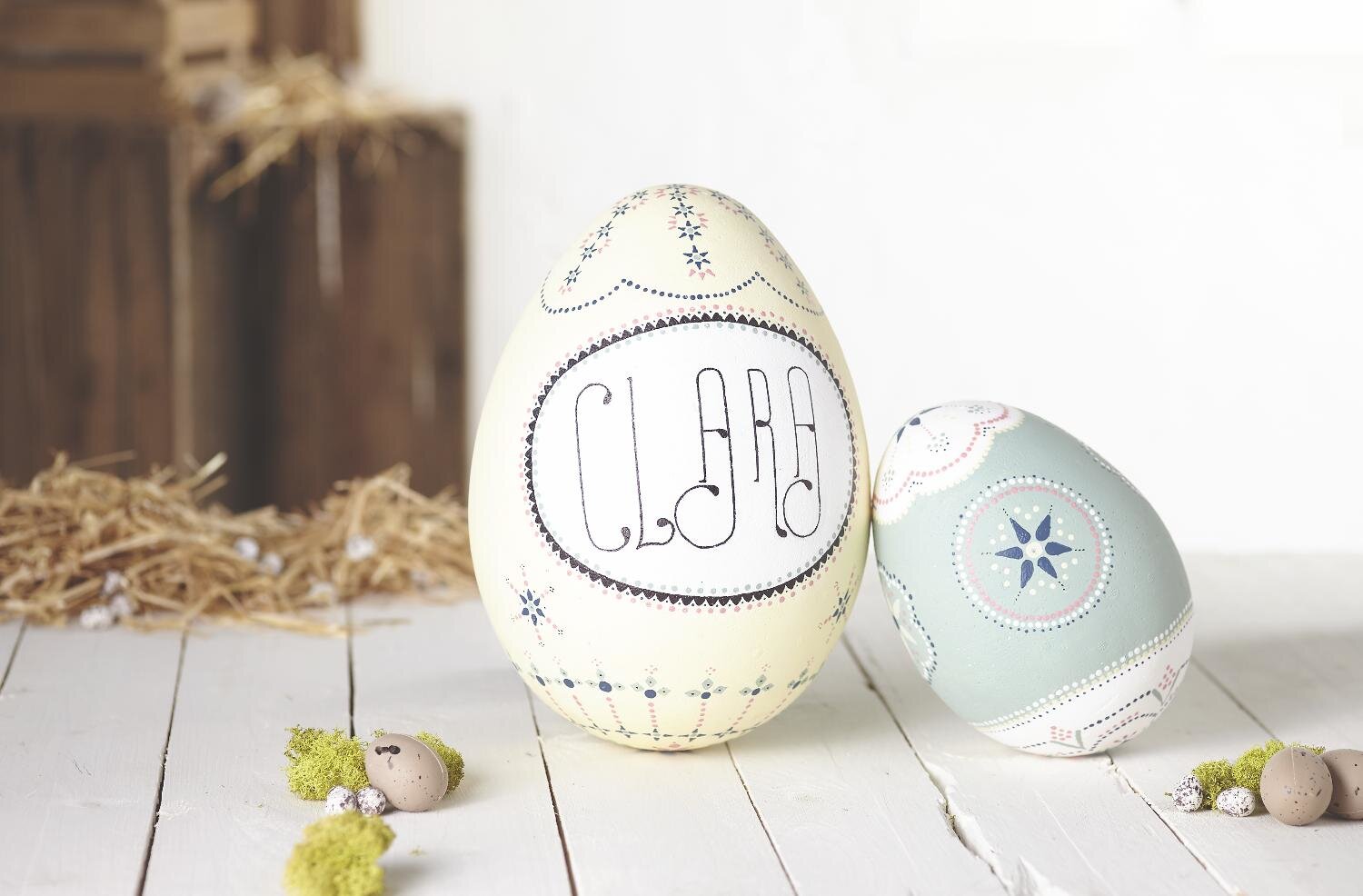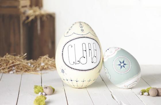 Motivy lze snadno načrtnout perem Strich-Ex, linie pera po chvíli zmizí. Vajíčka lze obarvit pastelovými řemeslnými barvami podle vlastního vkusu.
