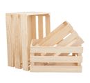 Skvělá sada 3 dřevěných bedýnek na ovoce VBS o rozměrech cca D 40 x Š 30 x V 19,5 cm, D 36 x Š 26 x V 18 cm a D 32 x Š 22 x 16,5 cm. Pěkné bedýnky na ovoce mají po stranách malé zapuštěné úchyty. Bedýnky jsou vyrobeny z kvalitního borovicového dřeva a mají překližkový podstavec.