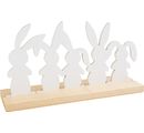 Elegantní kombinace bíle natřených postaviček zajíčků a přírodního dřevěného podstavce dodá vašemu obytnému prostoru přirozené kouzlo. S výškou 17 cm a délkou 30 cm se tato dekorace skvěle hodí na každý stůl nebo polici a dodá jim stylový akcent.