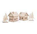 Objevte kouzlo romantické vesnické idyly v mini formátu s Dřevěná stavebnice "Světelné domy a jedle". Tato okouzlující stavebnice přináší dva detailně propracované dřevěné domečky, čtyři jedličky a dvě LED pohádková světýlka přímo k vám domů.