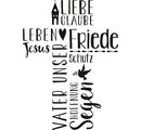 V podobě kříže je vyobrazeno mnoho slov týkajících se náboženství a církve . Jsou zde zmíněny ústřední pojmy od lásky přes požehnání až po víru.