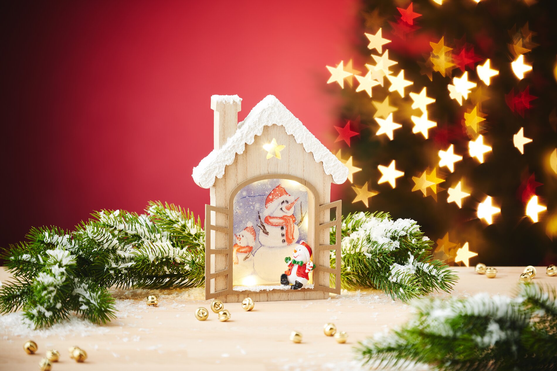 Konečná montáž a zdobeníNyní můžete na zadní stranu domečku přilepit ozdobenou fólii lampy. Na parapet umístěte malou postavičku, která váš domeček oživí. Zezadu připevněte šňůru světel, která vytvoří kouzelnou záři.