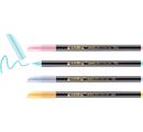 Díky inkoustu na vodní bázi ve filtračním systému jsou rychleschnoucí a málo zapáchají. Sada obsahuje barvy pastelově modré třpytky, pastelově fialové třpytky, pastelově růžové třpytky a okrově žluté třpytky. Díky speciálně vyvinutému hrotu pro plynulé a přesné psaní dodají zvláštní nádech poznámkám, deníkům, fotoalbům, visačkám na dárky nebo (stolním) kartám. Třpytivý efekt s elegantním, rovnoměrným leskem je jedinečný a dodá šmrnc vašemu každodennímu životu - do školy, pro volný čas i do práce. Ideální také jako dárek!