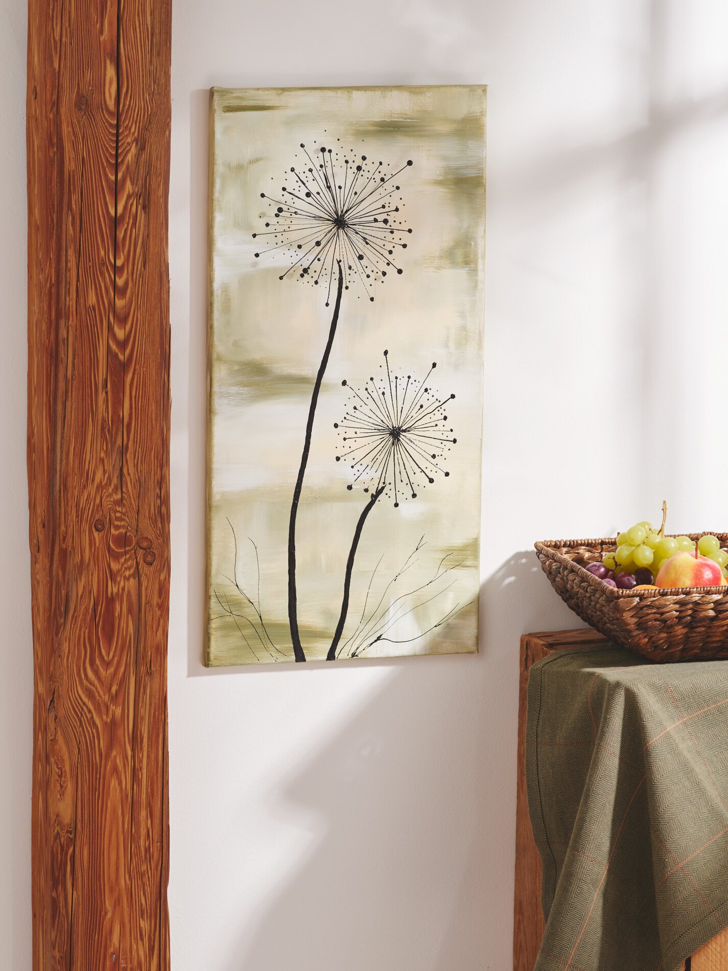 Are you looking for a painting idea for an unusual mural? Then this acrylic painting could be just the right inspiration for you: some pistils of dandelions protrude three-dimensionally from the picture. Learn here how you can create this picture yourself!