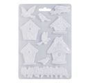 The 3D Textured mat "Garden - Nesting box" is the perfect product for all craft enthusiasts and DIY fans who would like to realize their own creative ideas. With this modelling mould, you can quickly and easily design various bird motifs and nesting boxes and give free rein to your creativity.