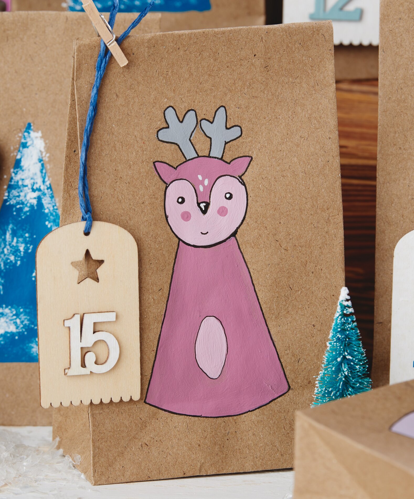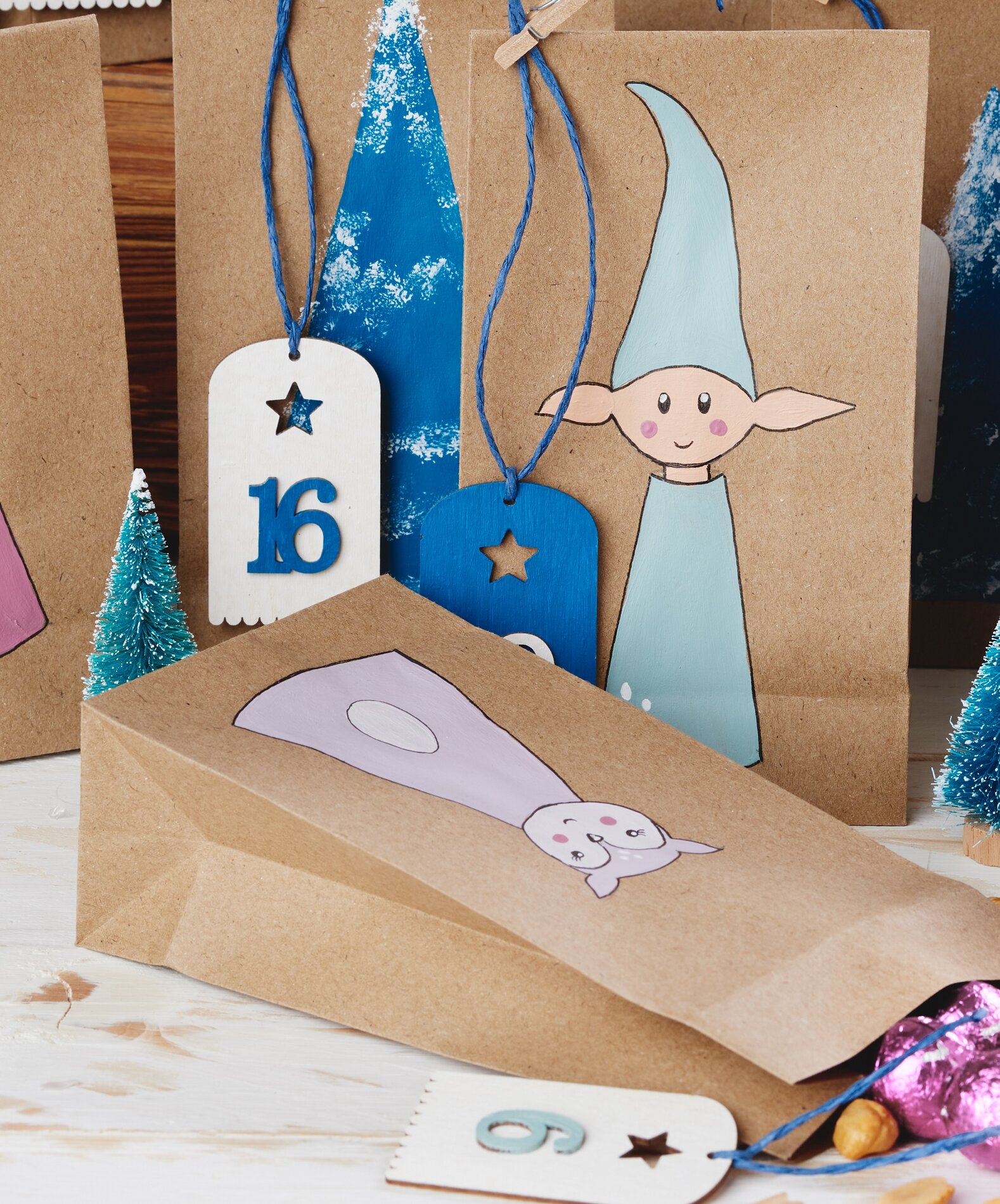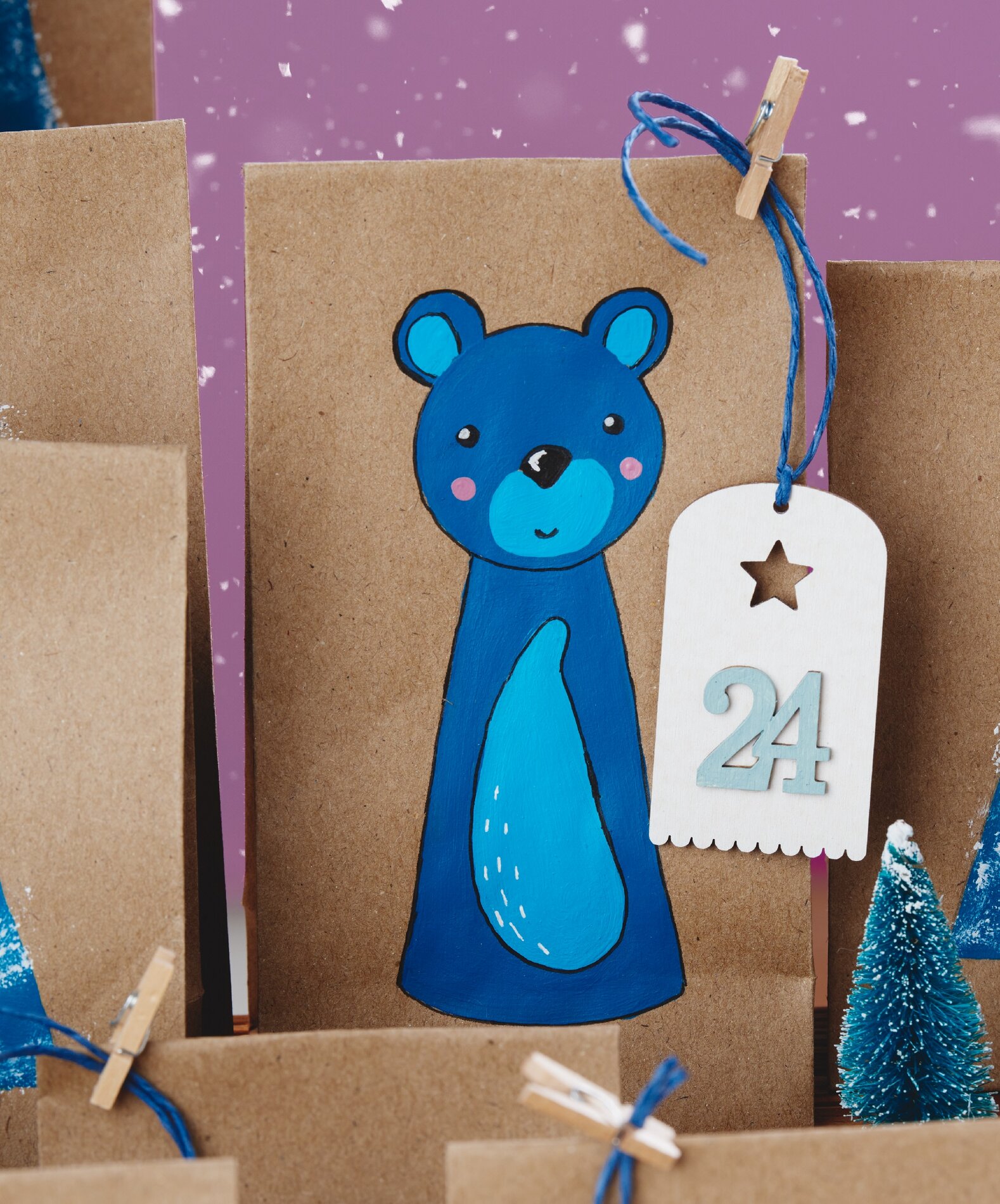 A self-made Advent calendar sweetens the long wait until Christmas Eve. With these instructions you can make your own Advent calendar out of paper bags. This one has been painted with cute figures and fir trees. It's very easy to do with our free motif template.