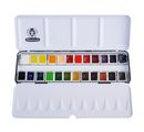 ACADEMY Watercolor box with 24 whole cups from Schmincke in a top quality for beginners and advanced painters A high-quality and professional metal box with a metal ring on the bottom for a firm hold in the hand. Inside the box is a metal palette for mixing the colors, which also serves as a cover for the colors. This beautiful and large watercolour box leaves nothing to be desired.
