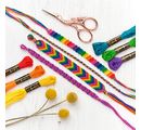 Colourful Anchor Starter Kit "Friendship Bracelets Kit Rainbow" for making great friendship bracelets. The kit contains 8 strands of Anchor embroidery twist made from cotton in beautifully coordinated colours. You can make 4 different bracelets using the step-by-step instructions.