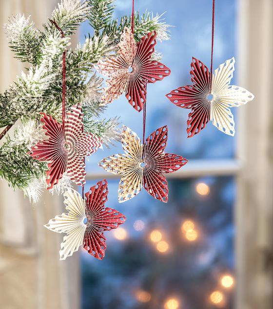 These folded stars are produced with a new type of embossing template. You will need a only punching and embossing machine and a beautiful On the Christmas Paper. tree or as a gift tag, these stars are an absolute must at Christmas time.