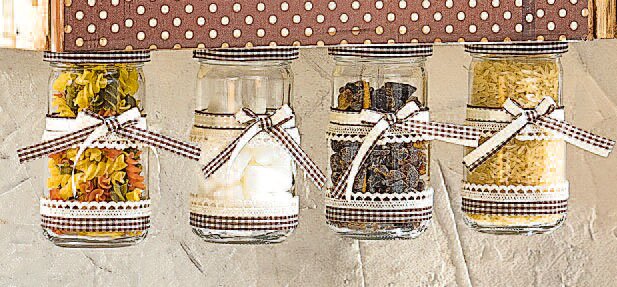 Glue check ribbon, Satin ribbon and lace around the glasses, bows from Satin ribbon and fix check ribbon with hot glue to the glasses.
