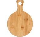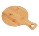 A round wooden board with a handle and a hole of about 2 cm for hanging. This wooden board is treated with natural, food-grade oil. For a longer life, this Bambooboard should be rinsed by hand