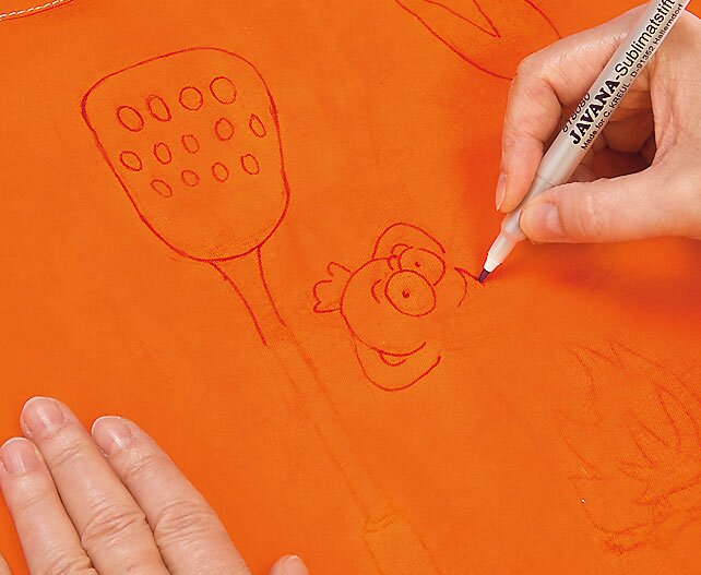 After drying, the Fabric paint is fixed by ironing. The apron can then be washed at 40°C.