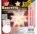 Wonderful bascetta star set "transparent paper" in white. The 32 leaflets have a size of approx. 15 x 15 cm and 20 x 20 cm with a paper weight of approx. 115\ g/m².