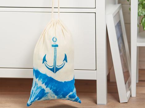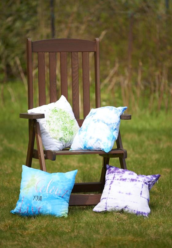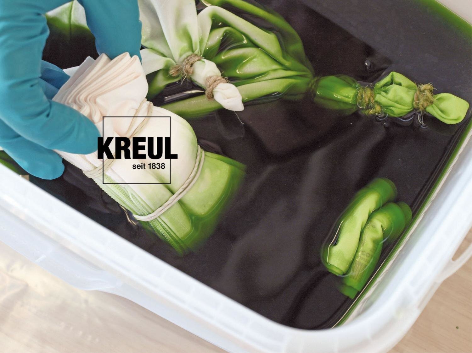 Step 2: Carefully read the instructions for your particular paint product and fill the container, such as a bucket, with an appropriate amount of water and stir the Textile paint according to the package instructions. Now put your cloth utensil into the dye bath for about 1 hour. The longer it remains in the dye bath, the more intensive the dyeing. If necessary, now place the fabric piece in your fixing bath. (see package instructions)