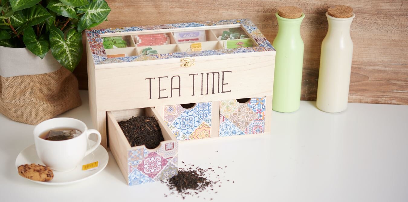 VBS Tea box with 3 drawers and viewing window