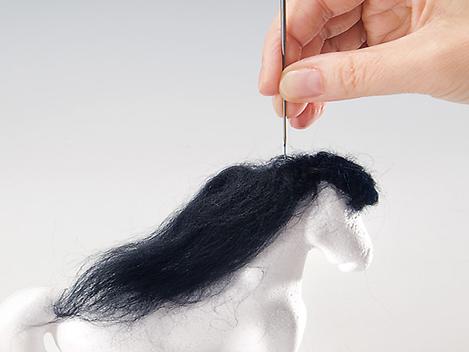 Take some virgin wool in your hand. You will be modeling and felting by poking the wool over and over with the felting needle. Your hand helps shape and model. Dry felting with your free hand, however, takes some practice.