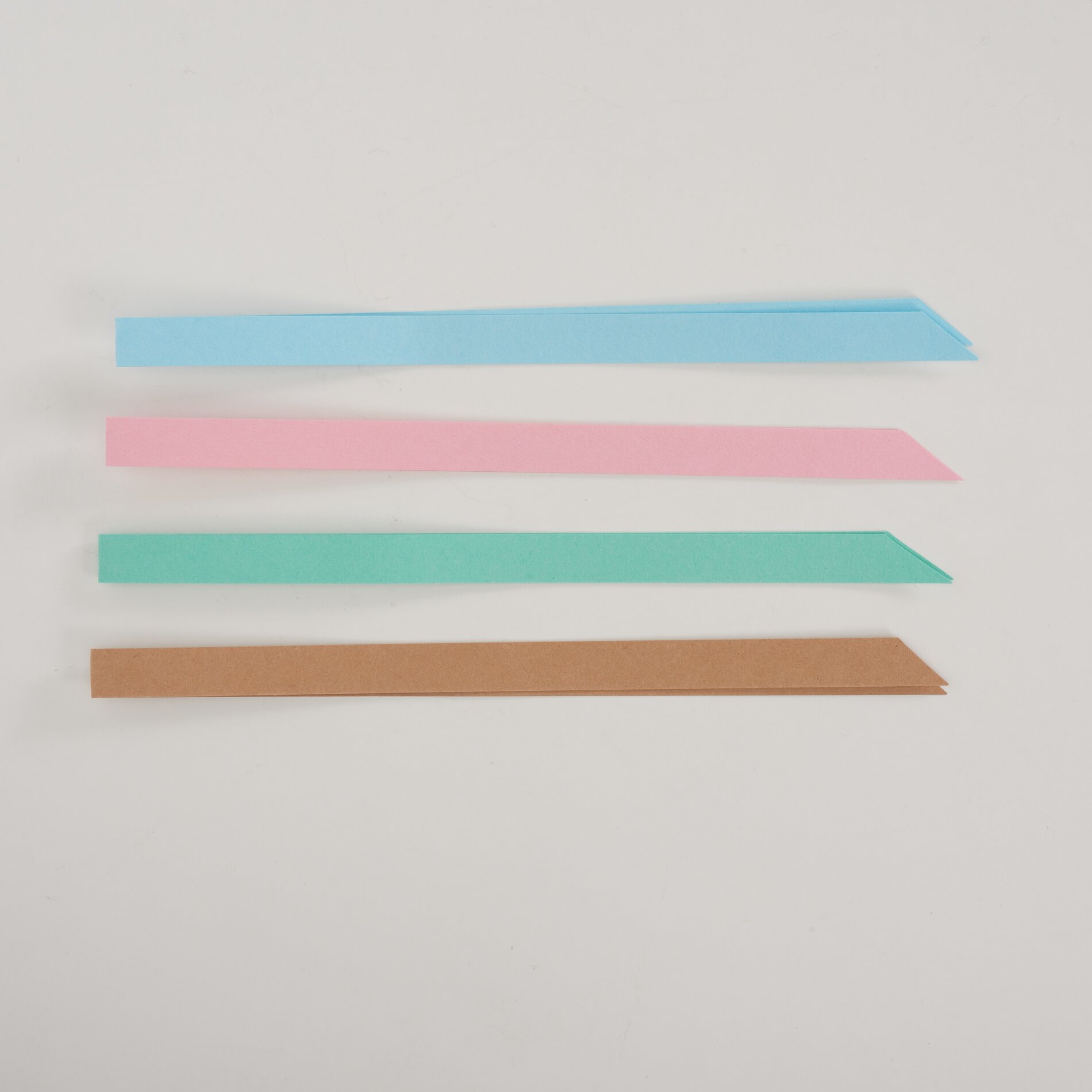 For each Fröbel star, you need 4 equal-length paper strips. For a classic Fröbel star, paper strips with a length of 45 cm and a width of 15 mm are usually used. The Selection of paper strips. is just as varied as the different sizes of Froebel star. In general, the width to length ratio is 1:30. This means that a paper strip length of 30 cm is required for a width of 1 cm and a length of 60 cm for a width of 2 cm.