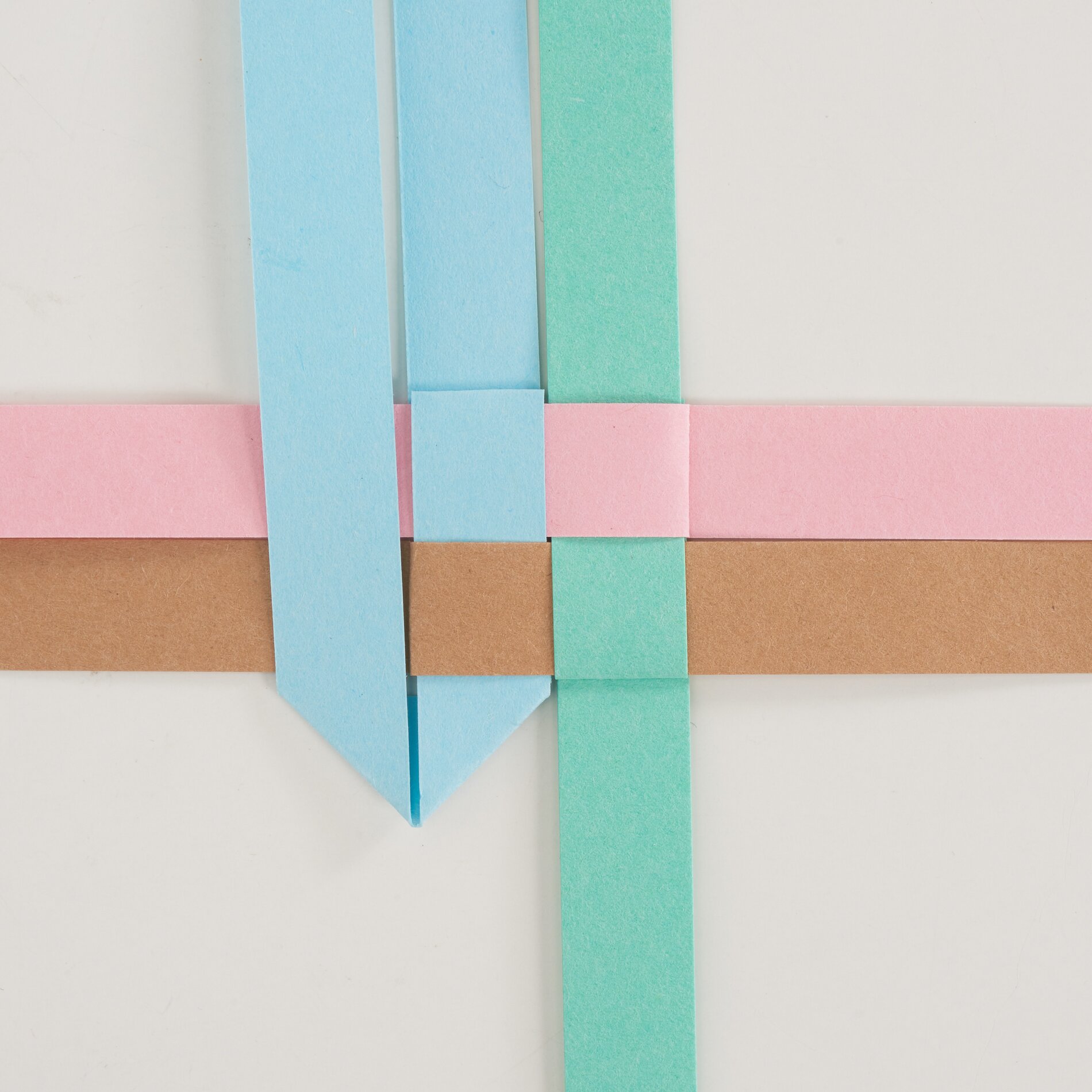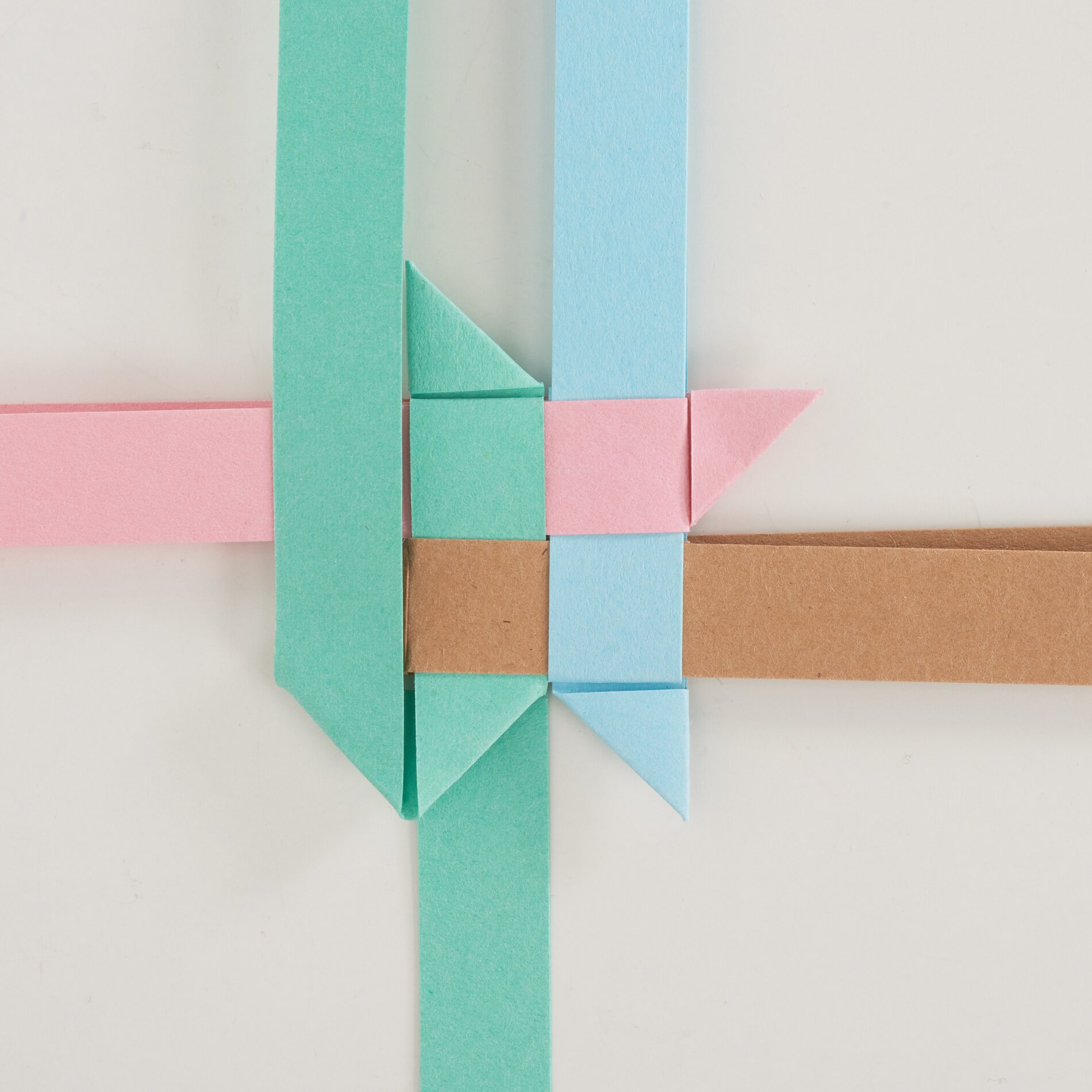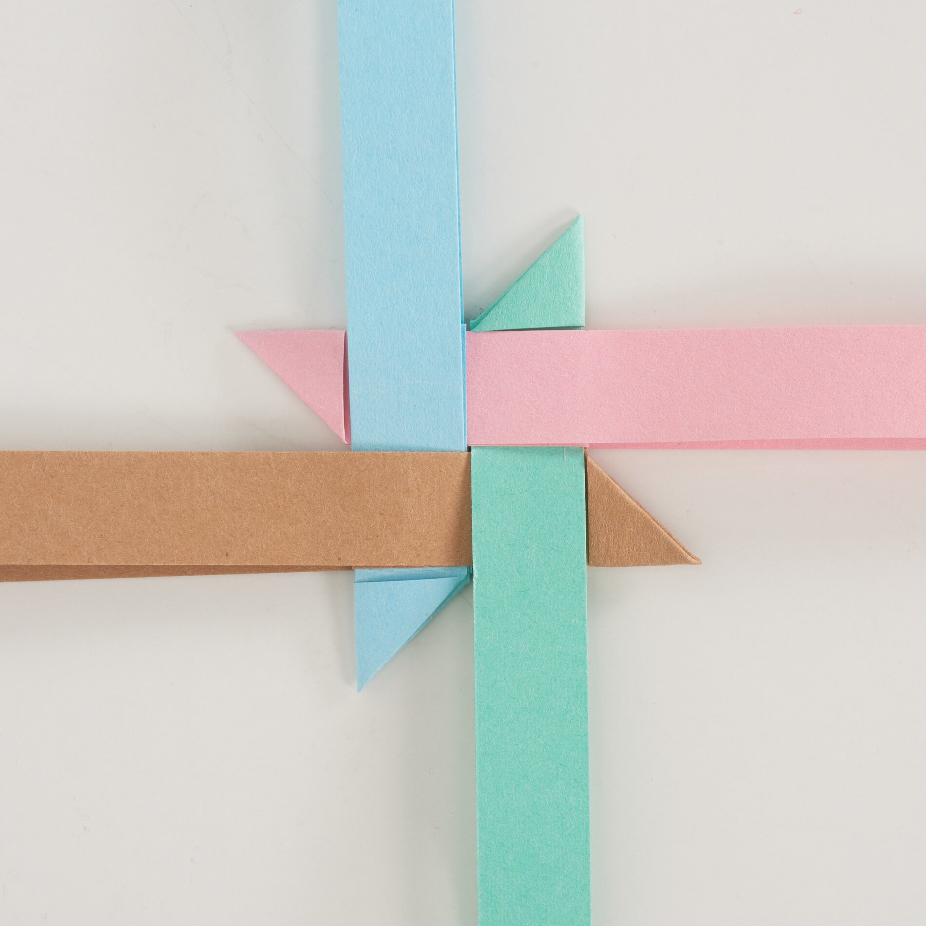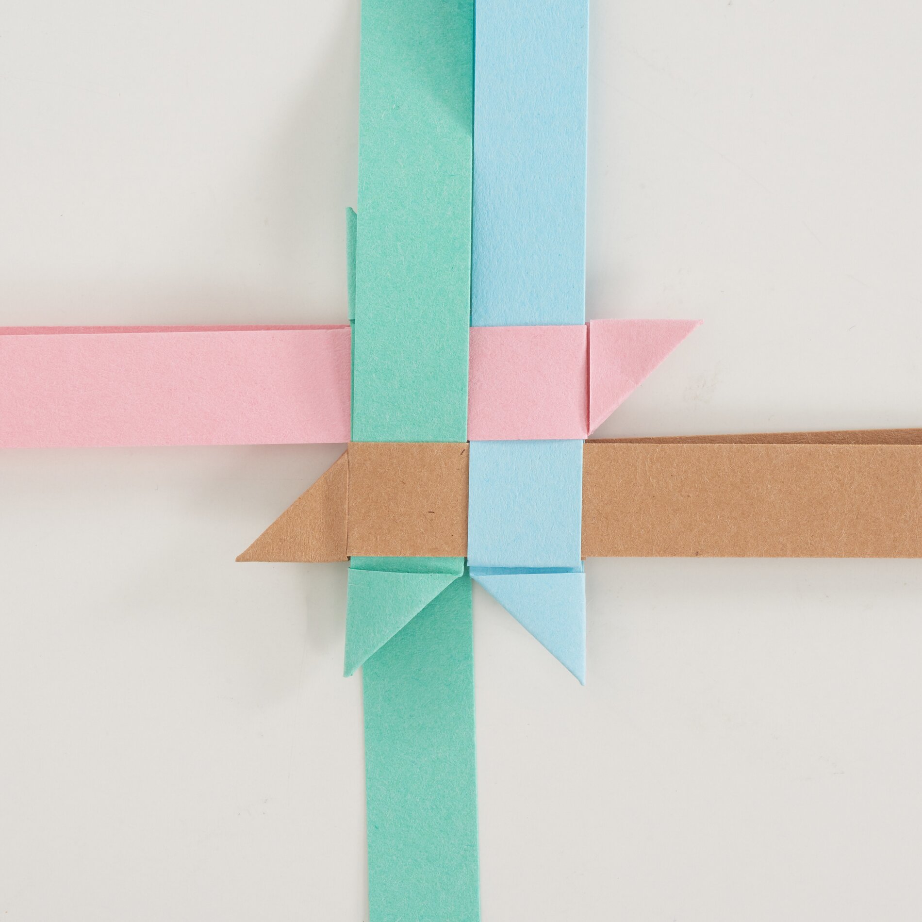 Thread the top right-hand strip through the loop created by the first folded strip.