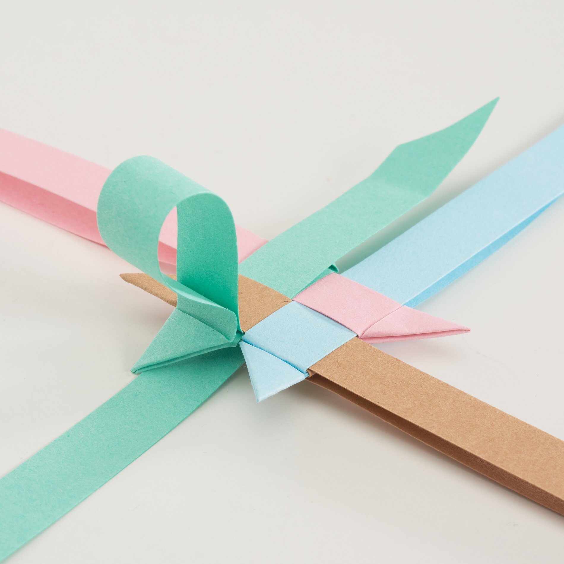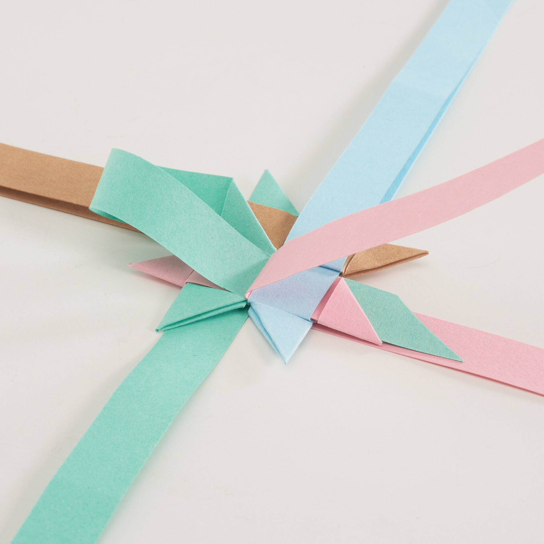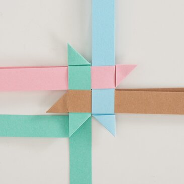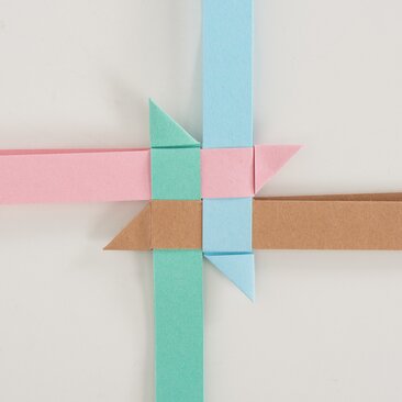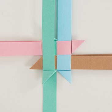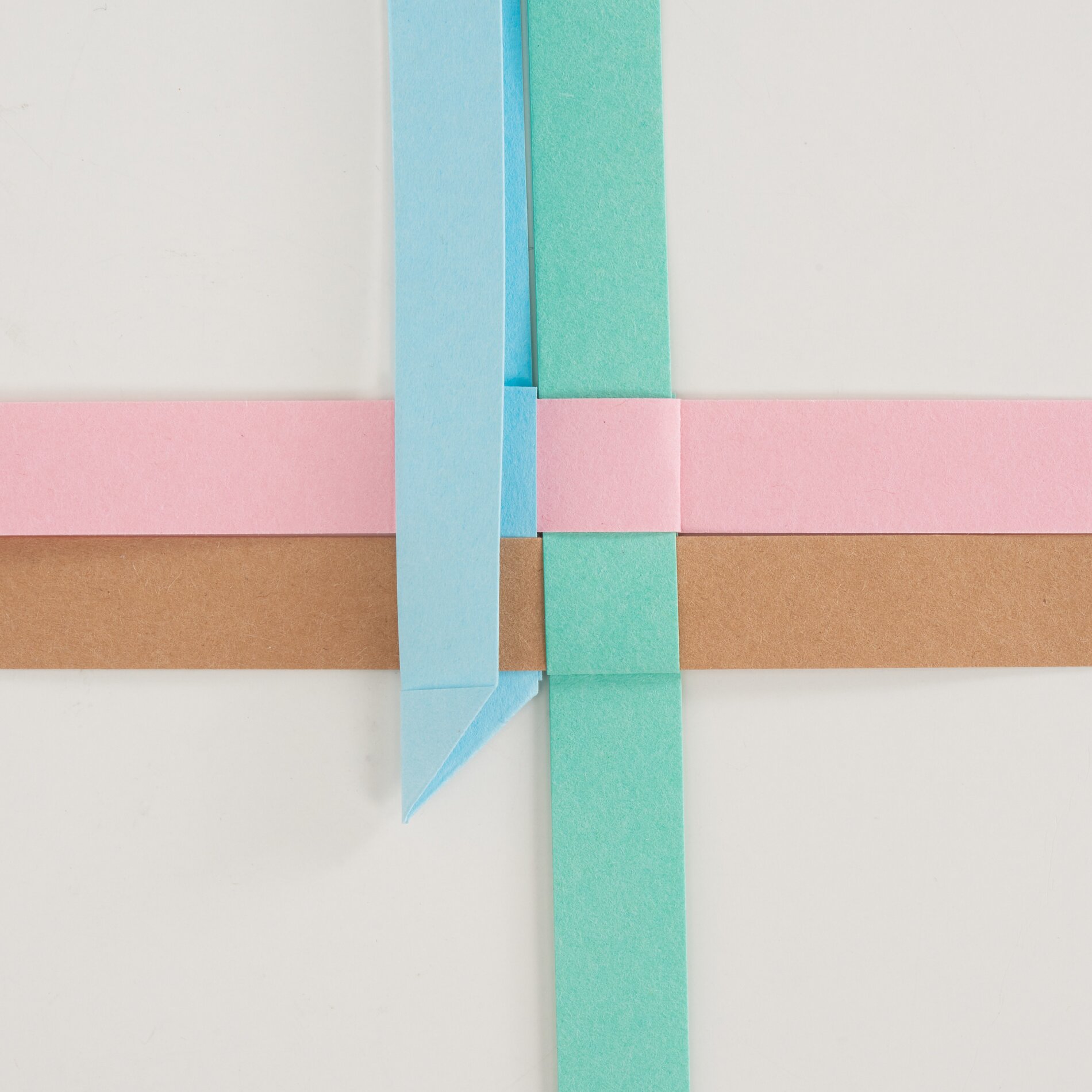 Thread the top right-hand strip through the loop created by the first folded strip.