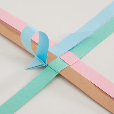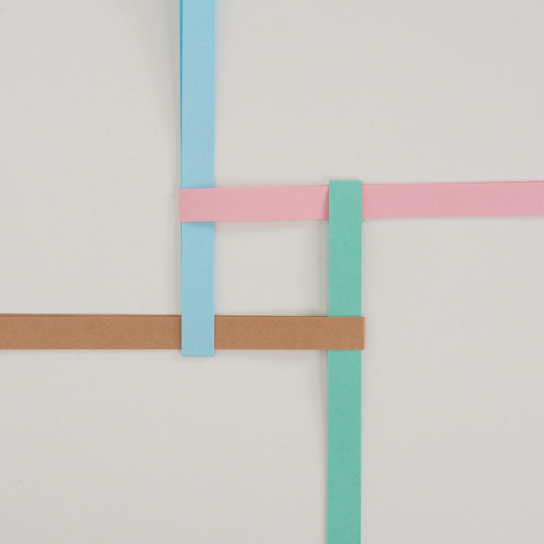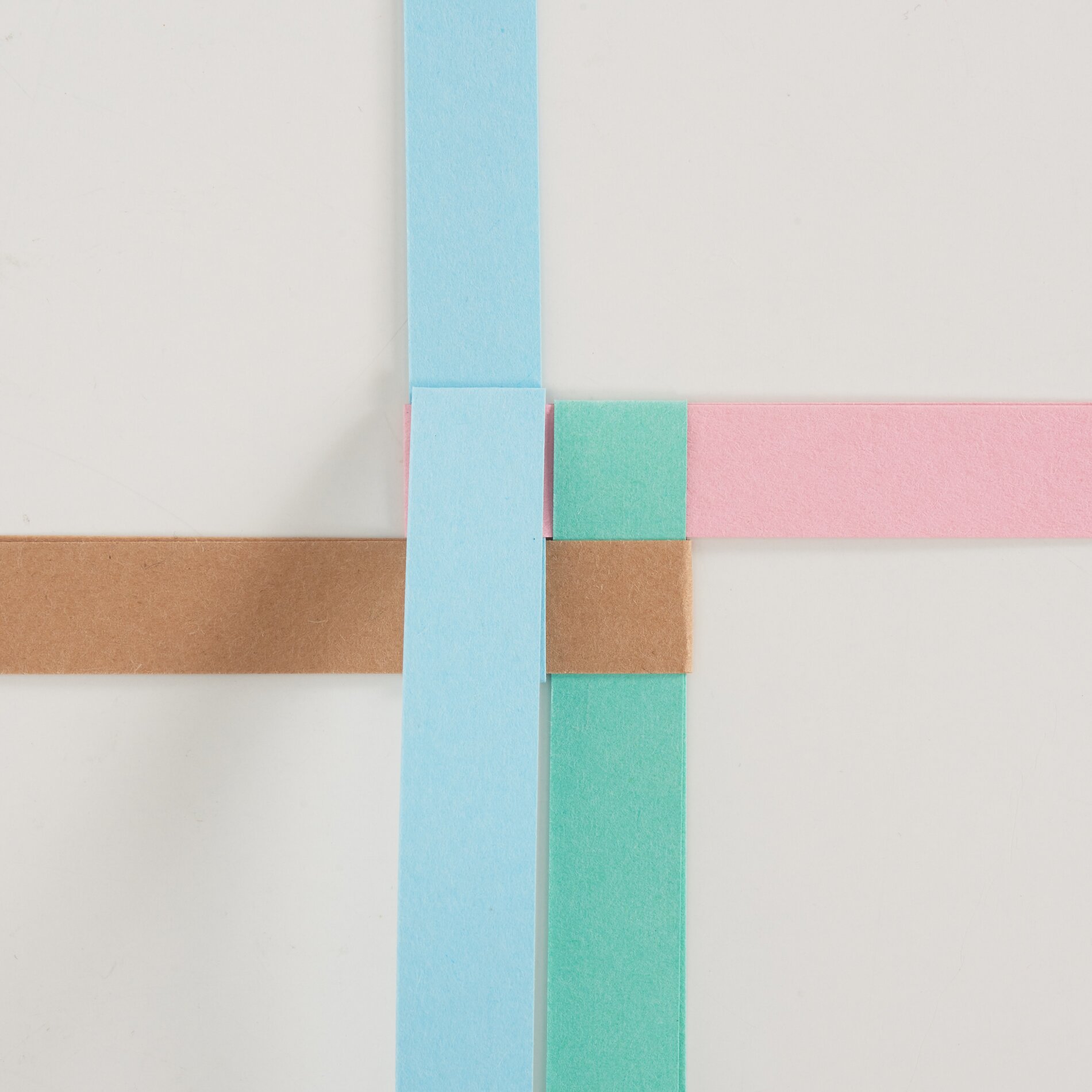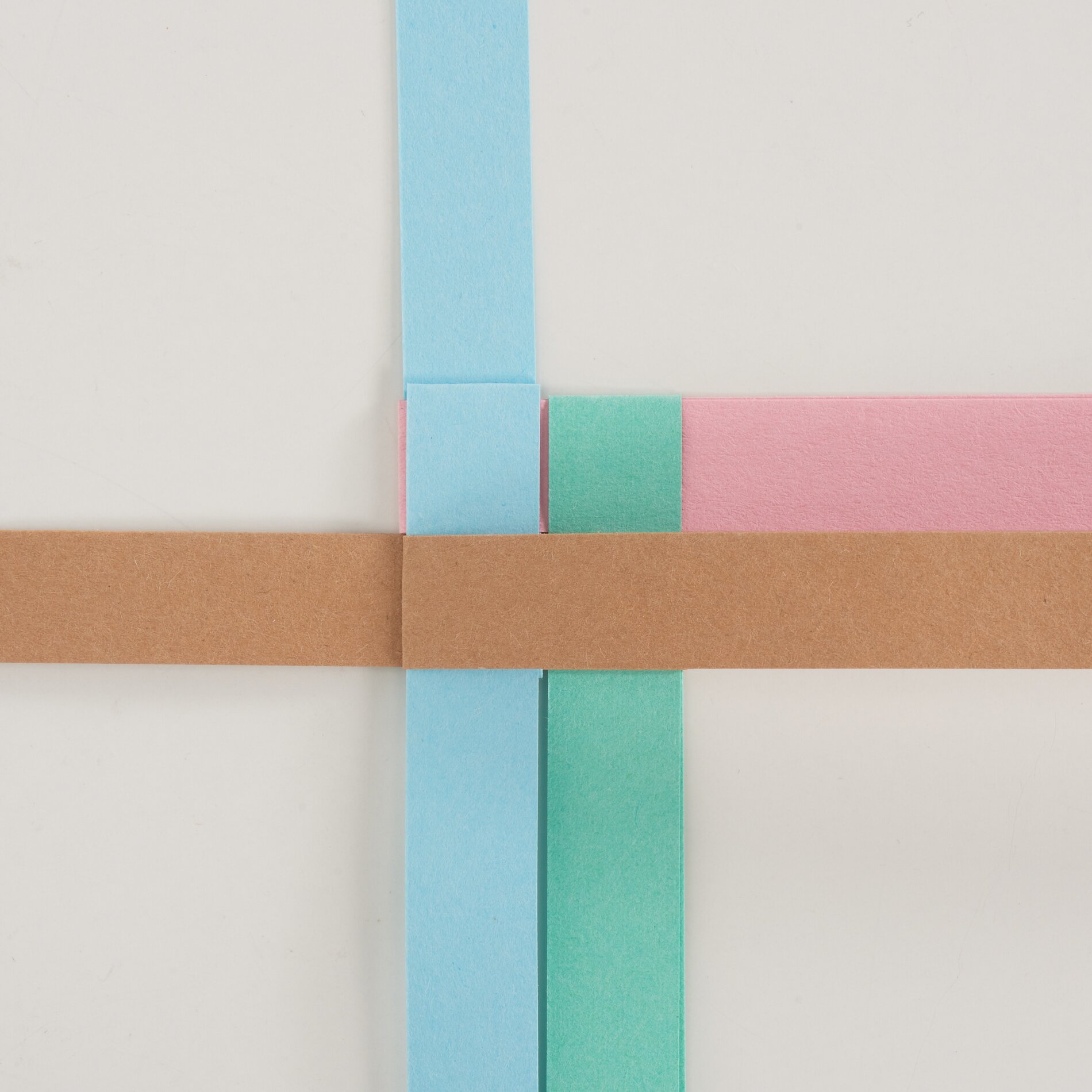 Thread the top right-hand strip through the loop created by the first folded strip.