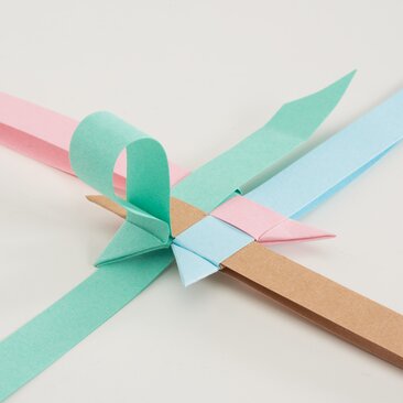 ..and pull the paper strips with the outside through the flap of the paper strip at the bottom right.