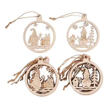 Wooden decoration pendant "Round" with ribbon, set of 4
