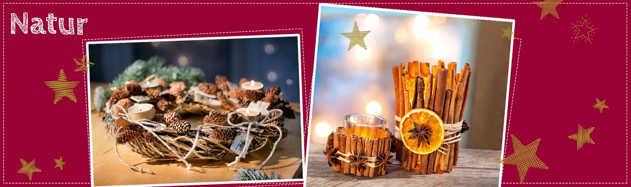 Simple appearance with natural decorationWood, fir cones, twigs, orange peel, cinnamon sticks or Straw - your favourite working materials can be found in the woods and meadows. You can use them to make rustic wreaths, intensive green fir decorations or lifelike Nativity. Inspire us with your "natural" Christmas idea and win first place!