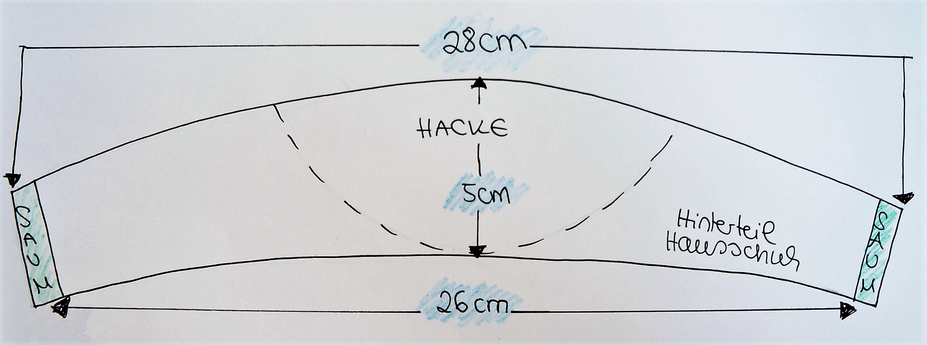Nachdem die Vorlage für unseren Hausschuh fertig ist, übertragen wir diese auf den Nähstoff und schneiden alle drei Teile aus. Denkt daran, dass ihr jeden Zuschnitt 2x benötigt.